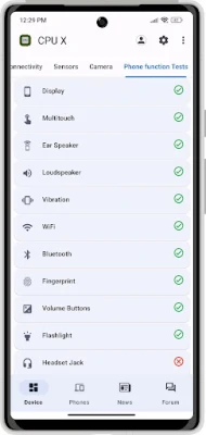 • Tests - test your device's functionalities like Display, Multitouch, Ear