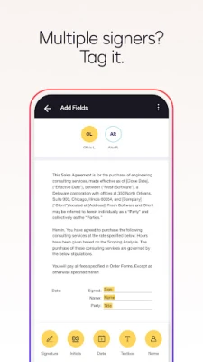 • Manage signing on-the-go. Remind, void, in-person signing, and reusable templates.